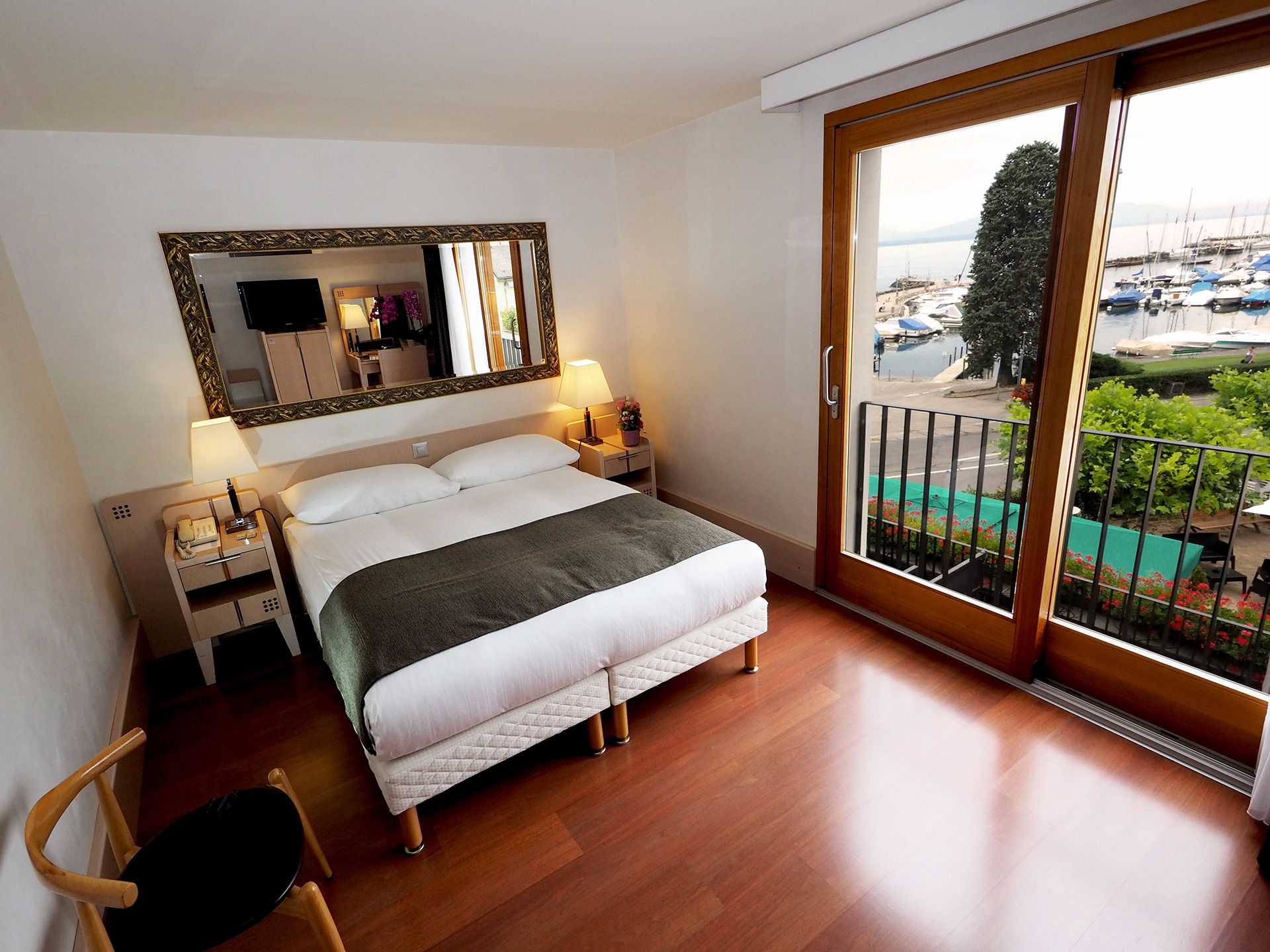 Our thirty rooms offer exceptional views of Lake Geneva and Mont Blanc, the picturesque marina or the medieval castle of Nyon, with a comfort, great bedding and tranquility like no other, thanks to the brightness of the colors and the ergonomics of the furniture, specially designed for our hotel.