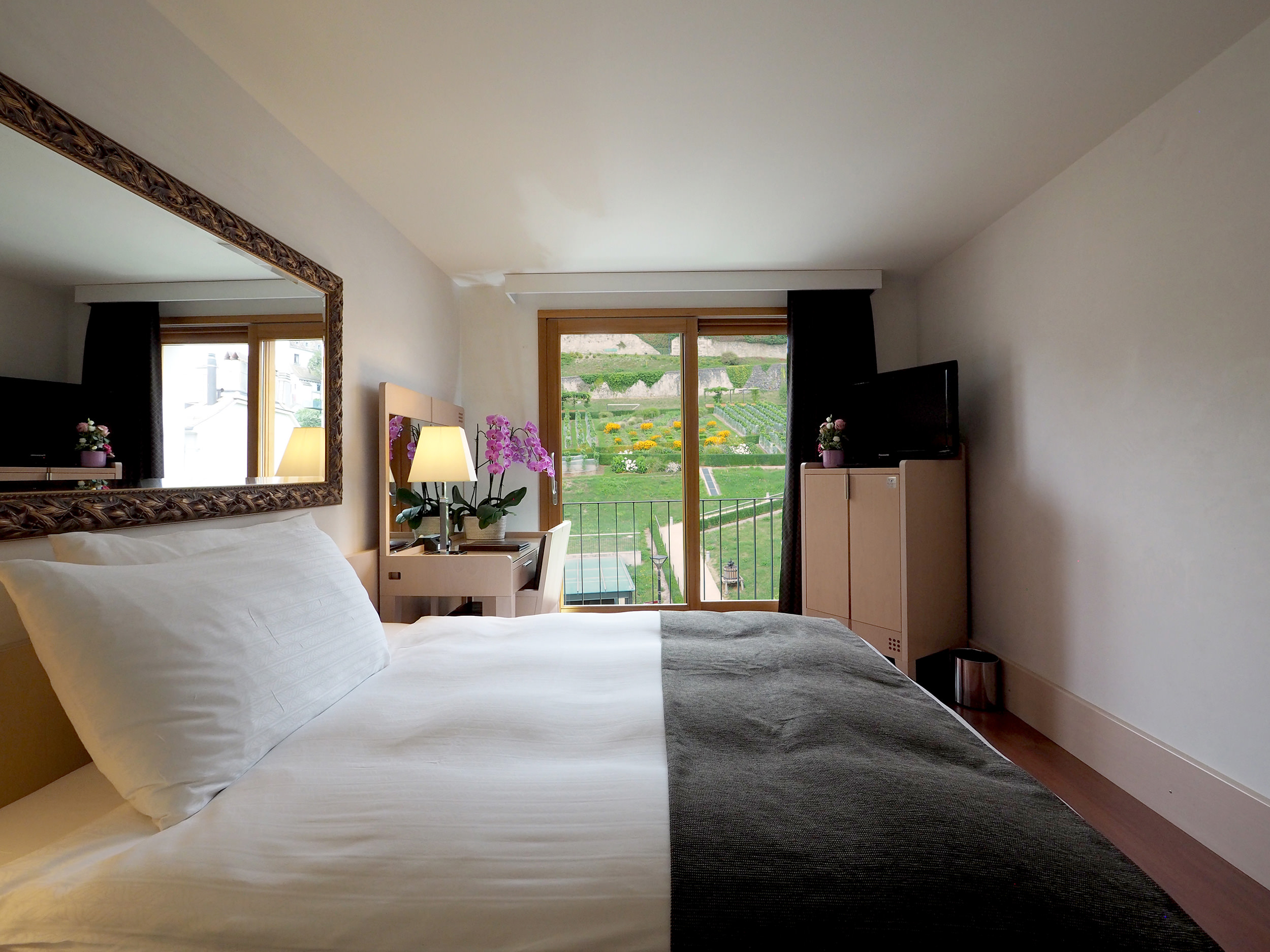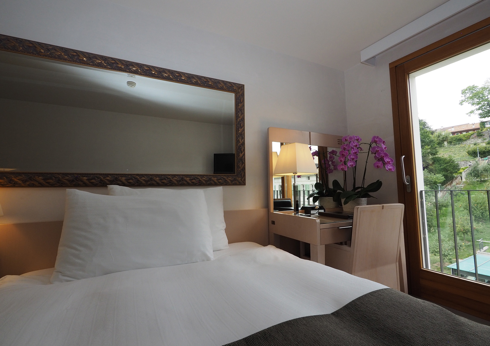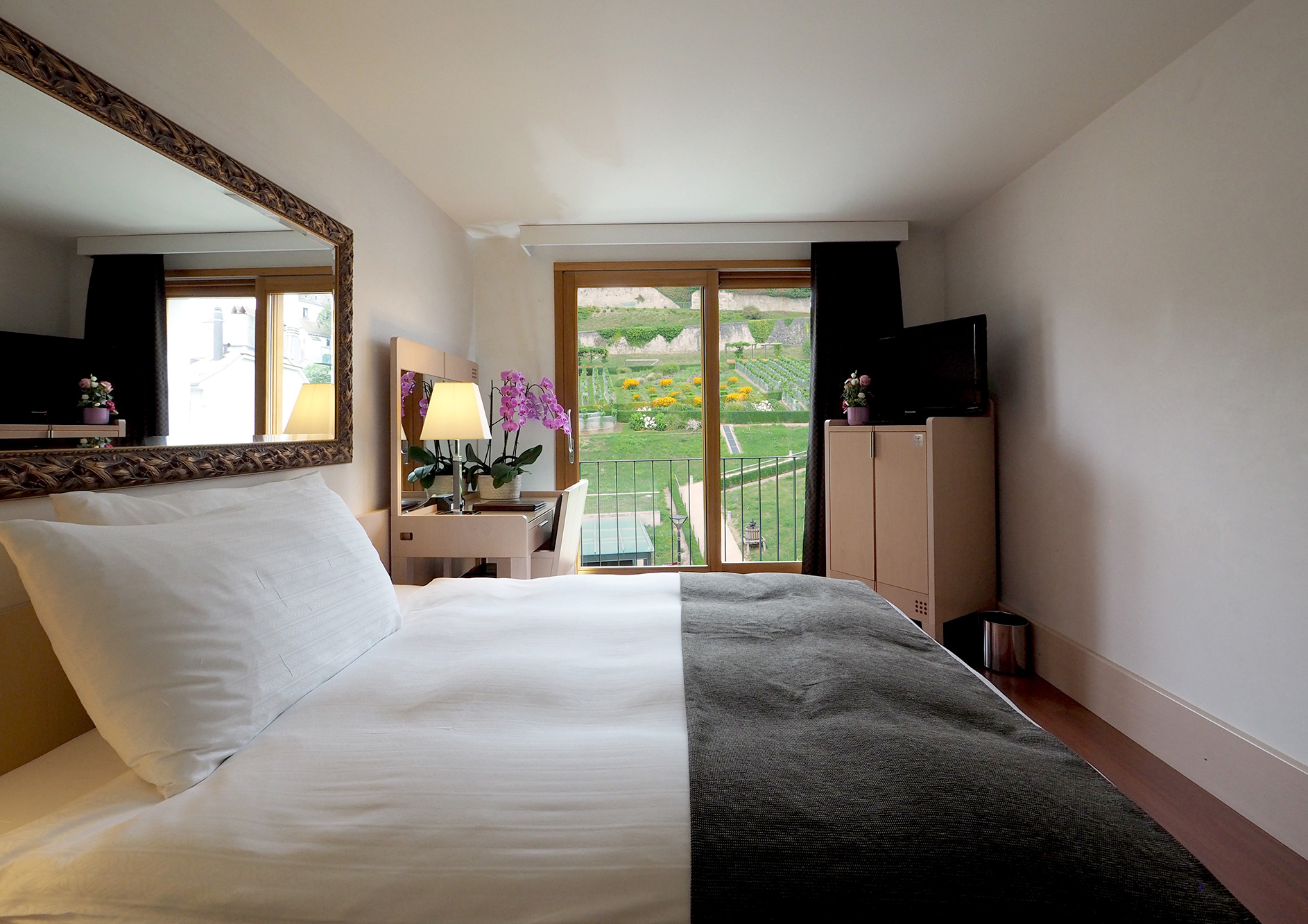 Discover our comfortable rooms with view on the vineyards or the lake and their well-equipped marble bathroom.